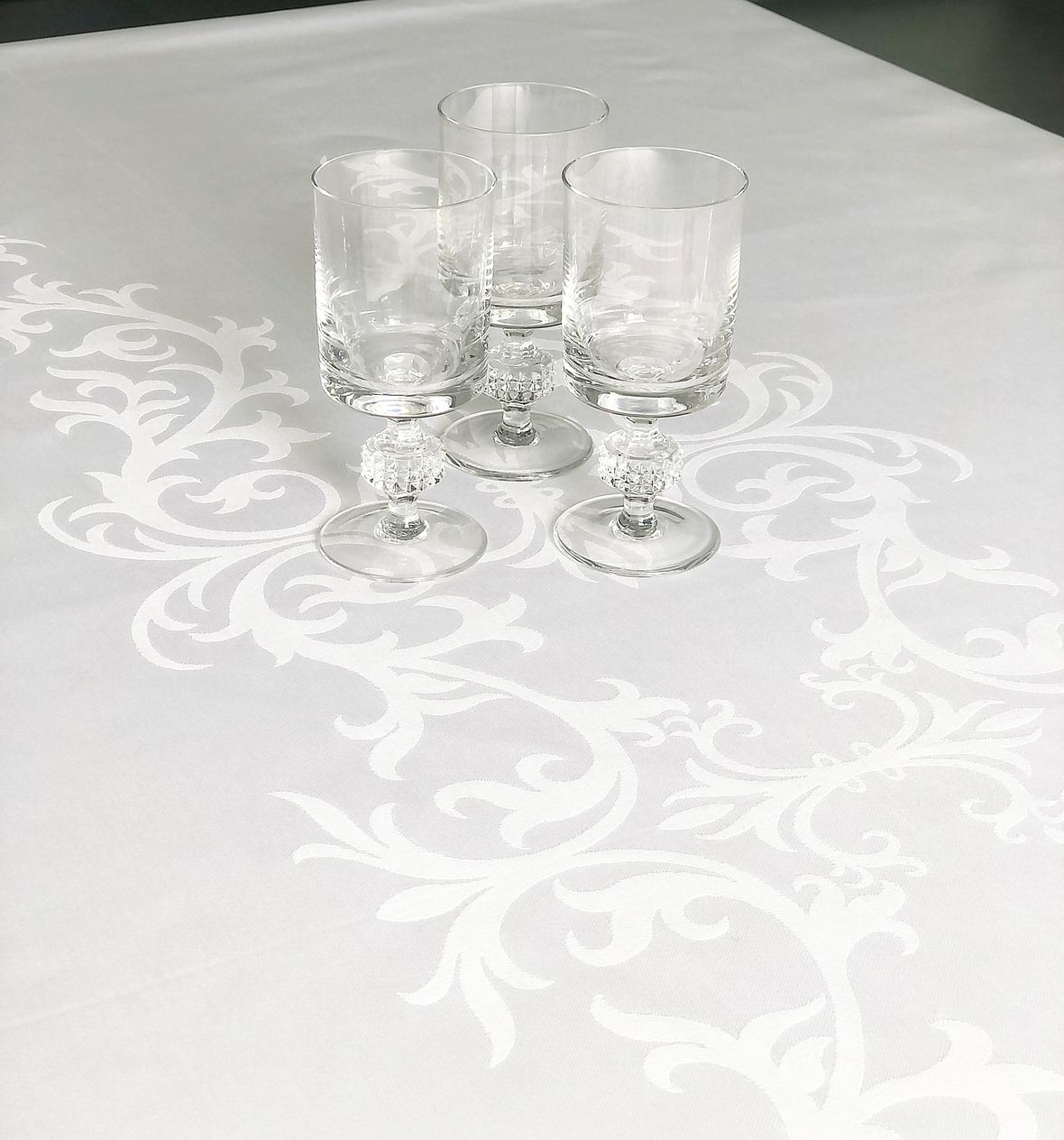 Material and Care "Damask tablecloth Prinzipal, white, with ornamental pattern, 140x360"