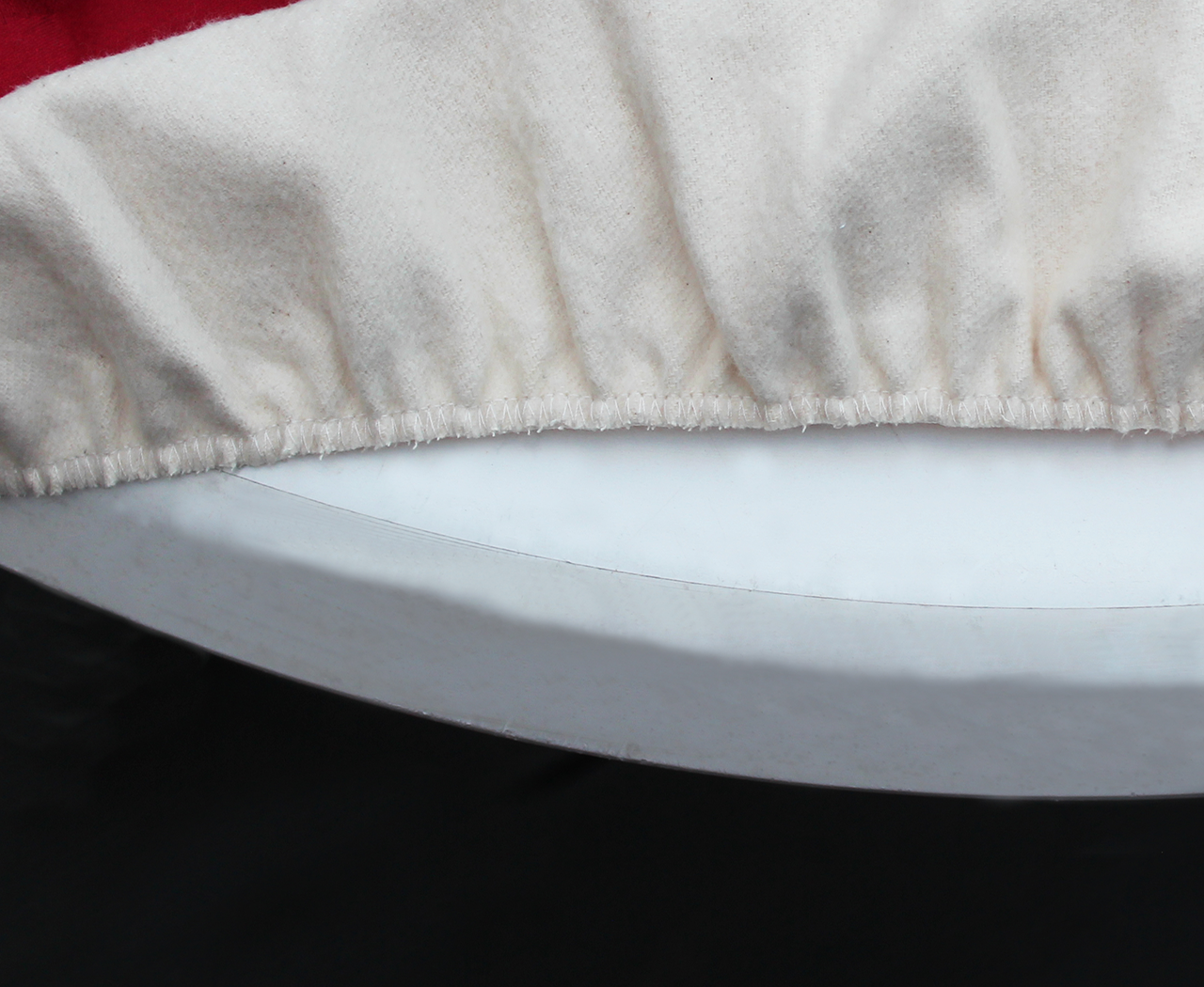 Note: The table legs should not be flush with the tabletop edge so that the molton can properly wrap around the table (similar to a fitted sheet). The table molton with stretch elastic reaches its perfect fit after the first wash.